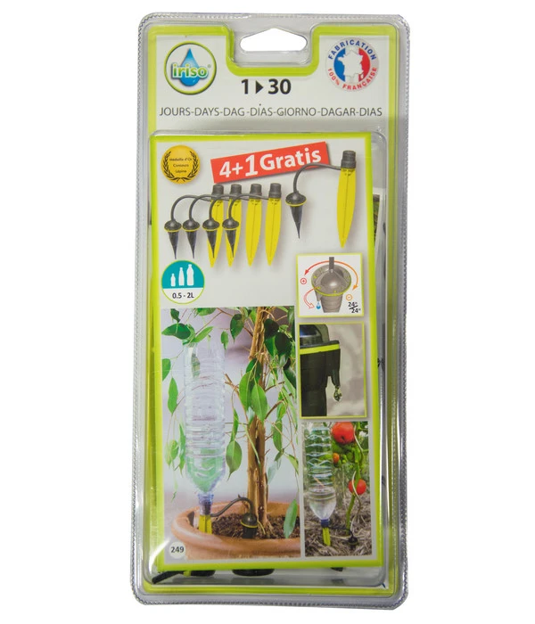 Die Anwendung des Tropfsystems Iriso ist praktisch und sehr unkompliziert. Stecken Sie die Vorrichtung einfach in die Blumenerde und befestigen Sie eine Flasche mit der Wassermenge Ihrer Wahl am oberen Ende. Schon beginnt die optimale Urlaubsbewässerung für Ihre Pflanzen und Sie können beruhigt Ihre Reise antreten, ohne sich um Ihre geliebten Gewächse zu sorgen. Machen Sie es sich komfortabel mit dem AJS Tropfsystem Iriso, indem Sie dieses praktische Zubehör am besten noch heute für Ihre Pflanzen bestellen.