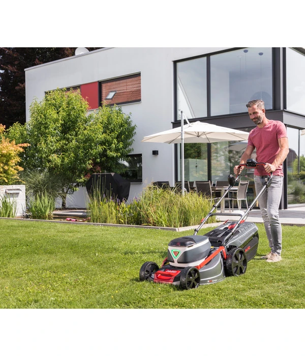 Zu nennen sind beispielsweise der praktische Varioantrieb, das neue smart-drive Cockpit und die smart Button Funktion. Mit diesen Innovationen erhalten Sie den Zugriff auf diverse Daten und Funktionen wie den Ladezustand der Akkus, die Aktivierung des ECO-Modus zum aktiven Energiesparen oder die Verbindung zu Ihrer AL-KO inTouch App. Damit lassen sich viele Informationen ablesen oder eventuelle Fehlermeldungen anzeigen. Selbstverständlich verfügt der Akku-Rasenmäher 512 LI VS-W Premium der Marke AL-KO über eine vielstufige zentrale Schnitthöhenverstellung sowie eine großvolumige Auffangbox für das Schnittgut. Unterstützt werden Sie zudem durch eine effektive Füllstandsanzeige und die hilfreiche Mulchvorrichtung. Die beiden für den Betrieb notwendigen Akkus und das passende Ladegerät sind im Lieferumfang bereits enthalten. Also, worauf wollen Sie noch warten? Bestellen Sie sich den schicken AL-KO Akku-Rasenmäher 512 LI VS-W Premium und genießen Sie höchsten Komfort bei der Pflege Ihrer Grünfläche!