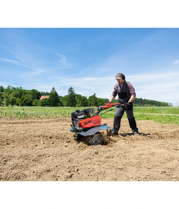 Der ergonomische Führungsholm und stabile Gummiräder sorgen für angenehmes und kraftsparendes Arbeiten auch über einen langen Zeitraum, ohne dabei Ihrer Gesundheit zu schaden. Sie können bei wechselnden Benutzern das Gerät individuell einstellen und variable Arbeitsgeschwindigkeiten ermöglichen es Ihnen zusätzlich das Hackergebnis bequem an Ihre Anforderungen anzupassen, während der Rückwärtsgang Ihnen das Rangieren erleichtert. Eine hochwertige Abdeckung aus robustem Stahlblech schützt Sie außerdem vor herumfliegenden Steinen und Erdreich. Überzeugen Sie sich selbst.