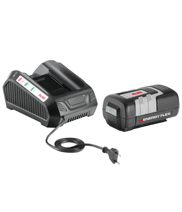 Mit dem AL-KO Energy Flex Set Akku B 150 LI erhalten Sie auch das passende Ladegerät. Nun können Sie schnell Ihren neuen oder jeden bereits vorhandenen Energyflex-Akku in nicht mal zwei Stunden wieder voll aufladen. Dieser ist haltbar, verlässlich und erfreut durch die Abwesenheit eines Memory Effekts oder einer Selbstentladung. Um den Ladezustand jederzeit zu ersehen, besitzt das Ladegerät eine entsprechende Signal-LED. Damit haben Sie sofort den richtigen Einblick in die aktuelle Situation. Überlegen Sie nun nicht länger, sondern greifen Sie zu und bestellen Sie sich das AL-KO EASY FLEX Komplettset – inkl. Akku und Ladegerät noch heute!