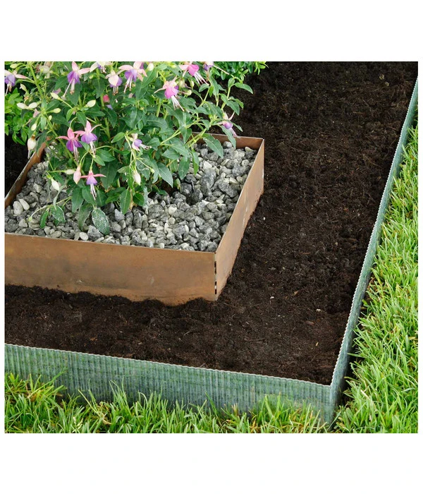 Gefertigt aus 0,25 mm starkem verzinktem und biegbarem Metallblecht ist das Rasenkantenband von Bellissa besonders robust und langlebig. Einmal verlegt, wird es Ihnen lange eine Freude bereiten. Zusätzlich ist das Band rundum 3,5 mm gebördelt um scharfe Kanten zu vermeiden. Das erleichtert die Montage nochmals enorm. Bestellen Sie sich am besten gleich mehrere Rasenkantenbänder mit Wellenstruktur und hübschen Sie ihren Garten ohne viel Aufwand auf.