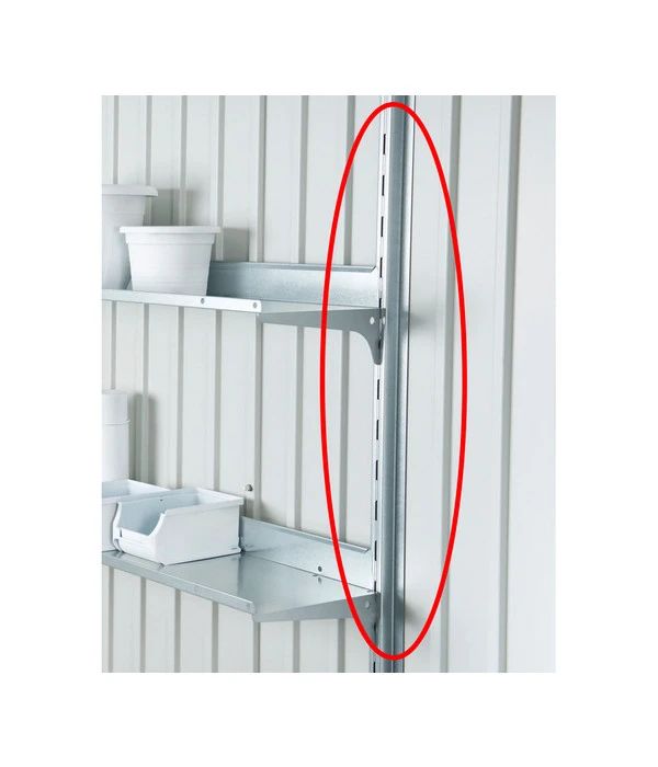 Sie sind bereits im Besitz eines Biohort Gerätehauses? Dann ist dieses Zubehör genau das richtige für Sie! Die beiden Regalsteher lassen sich leicht montieren und sind die perfekte Basis für Regalböden und Klapptische. So erhalten Sie im Handumdrehen mehr Staumöglichkeiten – ideal für Werkzeug, kleine Gartengeräte oder andere Utensilien für den Garten. Die Regalsteher eignen sich bestens zum Einhängen von Regalböden in verschiedenen Höhen.