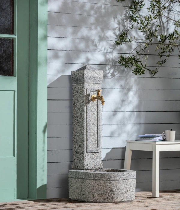 Mit dem Dehner Granit-Gartenbrunnen Berlin erhalten Sie ein Komplett-Set, das mit einem hochwertigen Messinganschluss und einem stilvollen Wasserhahn bereits fast alles enthält, was Sie benötigen so dass sich der Aufbau denkbar einfach gestaltet. Er ist für den Anschluss an die Hauswasserleitung geeignet, Sie können ihn als Rundlaufbrunnen aber auch an eine Pumpe aschließen. Und das Ergebnis genießen Sie dann jahrein, jahraus. Wenn Sie dafür sorgen, dass der Dehner Granit-Gartenbrunnen Berlin vor Beginn der Frostperiode vollständig entleert wird und durch eine Abdeckung kein Wasser an den Brunnen gelangt, kann er über den Winter sogar draußen stehen bleiben. Andernfalls empfehlen wir über den Winter eine frostsichere Lagerung des Brunnens.