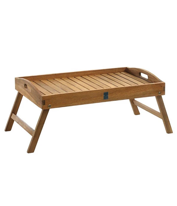 Das Holztablett Macao aus geölten Akazienholz verwöhnt Sie mit ausreichend Platz für Ihr Geschirr und einem stabilen Stand. Besonders praktisch ist der erhöhte Rand. Wenn Sie das Tablett einmal nicht benötigen, lässt es sich ganz unkompliziert zusammenklappen und bis zum nächsten Einsatz in einer kleinen Nische verstauen.