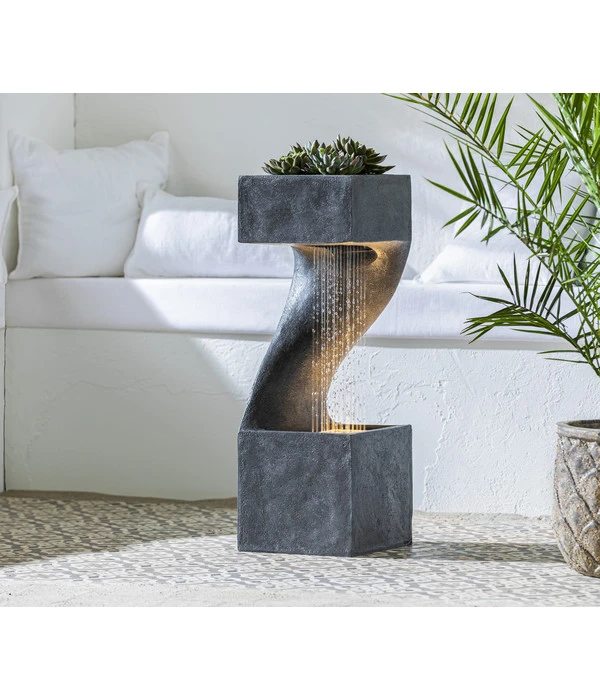 Extravagantes Wasserspiel mit integrierter Pflanzschale:
