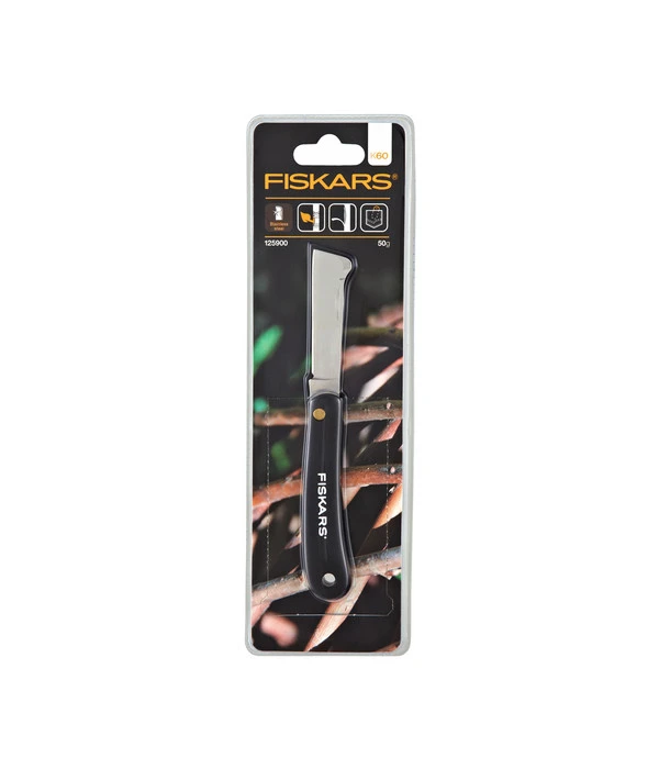 Das Fiskars Okuliermesser ist ein speziell für die Gartenpflege konzipiertes Messer mit einseitig geschliffener, extrem scharfer Klinge. Es dient zum professionellen Veredeln von Pflanzen, wie zum Beispiel Rosen oder Obstbäumen. Aus hochwertigen Materialien, wie stabilem Edelstahl, gefertigt, zeichnet sich das Fiskars Okuliermesser durch eine hohe Strapazierfähigkeit uns Langlebigkeit aus. Selbst stark verholzte Pflanzenbereiche können Sie mit dem erstklassigen Okuliermesser von Fiskars komfortabel bearbeiten. Das Messer besitzt einen Löser am Rücken der Klinge. Vom Hersteller Fiskars erhalten Sie volle zwei Jahre Garantie auf das hochwertige Okuliermesser.