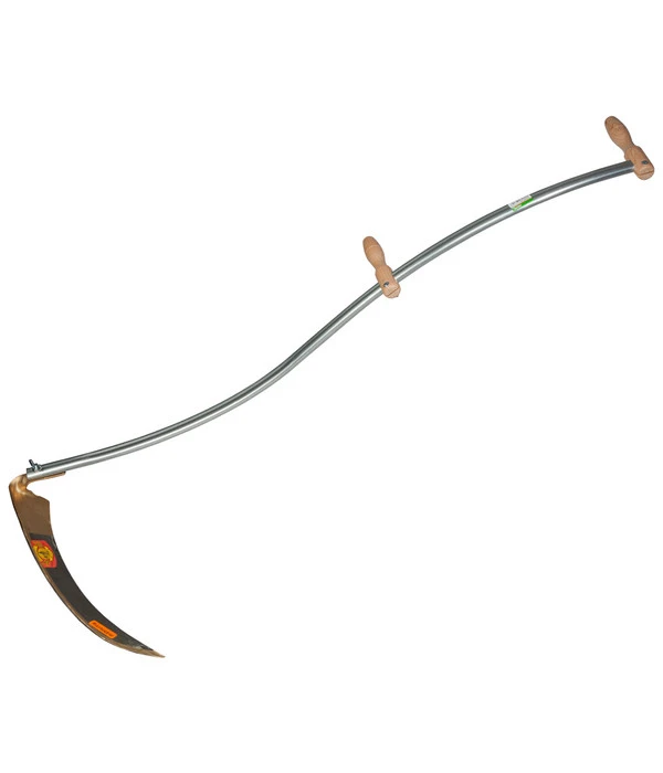 Die Freund Victoria Klappsense ist das ideale Werkzeug für das Mähen von Hand. Ausgestattet mit einem abklappbaren Sensenblatt ist sie gefahrlos zu verstauen und zu transportieren. Außerhalb der Mähsaison lässt sich die Freund Victoria Klappsense so bestens lagern. Das Sensenblatt hat eine Reichsform, ist geschmiedet und komplett mit Scheidenschutz ausgestattet. Der Sensenbaum ist aus einem verzinkten Stahlrohr, zum Lieferumfang der Freund Victoria Klappsense gehören zudem ein Sensenring und ein Schlüssel. Außerdem ist sie mähfertig gedengelt, Sie müssen sie also nicht erst schärfen, bevor Sie mit der Arbeit beginnen. Das Blatt der Freund Victoria Klappsense hat eine Länge von 60 Zentimetern, der Sensenbaum misst 140 cm.