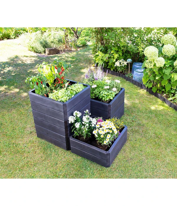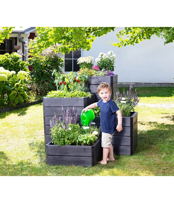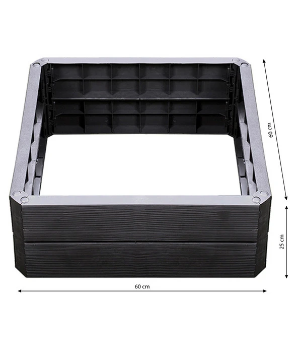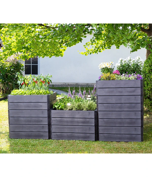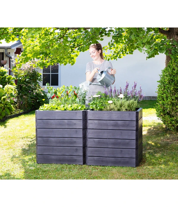Sie wollen auf ein praktisches Hochbeet setzen, um Ihr Gemüse anzubauen? Dann ist das Hochbeet-System Ergo Quadro Wood von Garantia für die Umsetzung dieser Idee genau das Richtige! Schon Ihr Rücken wird Ihnen die angenehme Arbeitshöhe danken, durch die ein ergonomisches Arbeiten jederzeit möglich ist. Darüber hinaus überzeugt das Hochbeet auch optisch auf ganzer Linie. Die täuschend echt wirkende Holzoberfläche wirkt edel und naturnah zugleich. Mit diesem hochwertigen Accessoire können Sie also sofort loslegen und Tomaten, Möhren, Gurken oder Erdbeeren anpflanzen, die Ihnen den ganzen Sommer als schmackhafter Snack zur Verfügung stehen. Ob für das Büro oder die Schule, Ihr selbst angebautes Gemüse und Obst wird Sie und Ihre Familie jedes Mal verzücken.