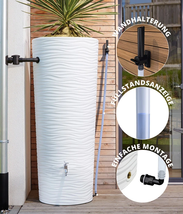 | Hinweis | Passend für alle oberirdischen Regenwasserbehälter der Marken Garantia und 4rain |