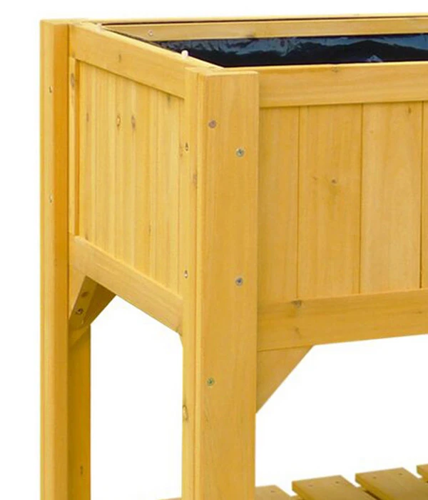 Erwerben Sie jetzt Ihr eigenes Hochbeet! Für alle Hobbygärtner gibt es nun die Möglichkeit, eine Zucht von empfindlichen Blumen und Stecklingen im eigenen Frühbeet selbst durchzuführen. In das Hochbeet mit Ablage passen problemlos mehrere Gemüsearten, Kräuter und Blumen. Es passt ideal auf den Balkon, die Terrasse oder auch in den Garten. Das Hochbeet mit Ablage besteht aus einer Holzverkleidung, welche im Innenbereich mit perforierter Folie ausgekleidet ist. Der Aufbau geht dank der vormontierten Teile und der Anleitung kinderleicht von der Hand. Sie müssen den ausgekleideten Kasten dann nur noch mit frischer Erde füllen und schon kann es losgehen. Wenn Sie einmal Bedarf für einen Gartentisch haben, dann lässt sich problemlos noch eine Arbeitsplatte oben drauf montieren, mit der Sie übrigens auch zarte Keimlinge vor Wind und Wetter schützen können. Aufgrund der Ablagefläche unterhalb des Beetkastens haben Sie außerdem die Möglichkeit, alle benötigten Werkzeuge und Hilfsmittel wie zum Beispiel Haken, Erde oder Handschuhe direkt vor Ort zu lagern.