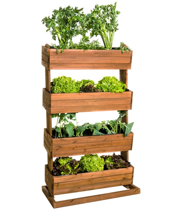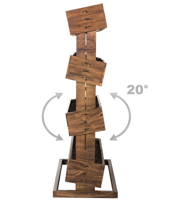 Das Hecht Hochbeet Cube 4 kann mehr, als Pflanzmöglichkeit für Ihre Nutzpflanzen zu sein. Dazu trägt das Holz bei, das als Naturprodukt mit angenehmem Braunton für eine natürlich dekorative Wirkung sorgt. Was dann noch ins Gewicht fällt, entscheidet Ihr Stilempfinden. Schließlich dienen Höhenverstellung und Neigung der Kästen nicht nur der rückenschonenden Bedienung, sondern auch der Optik. Haben Sie es gerne natürlich und verzichten bewusst auf klare Linien und rechte Winkel? Dann neigen Sie doch jeden Kasten anders. Oder lieben Sie es geradlinig? In diesem Fall stellen Sie das Hecht Hochbeet Cube 4 ganz akkurat gerade ein, damit es Ihre Terrassen- oder Balkoneinrichtung bestmöglich bereichert.
