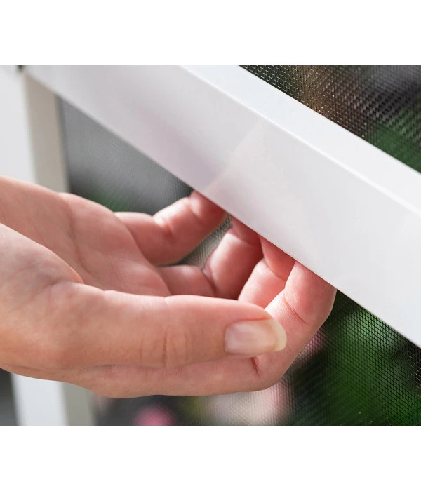 Sie lassen im Sommer gerne die Türe offen, wollen aber am liebsten die störenden Fliegen und Mücken draußen halten? Dann ist der Türbausatz Compact der Marke Hecht genau die richtige Lösung. Dank der geringen Abmessungen und der kleinen Auflagefläche passt der Insektenschutz auch in enge Zwischenräume, beispielsweise zwischen Rollokasten und Türe. Damit Fliegen und Stechmücken nicht hereinkommen können, Sie aber trotzdem eine gute Durchsicht haben, besteht die Einbautüre aus einem innovativem Filatec-Gewebe.