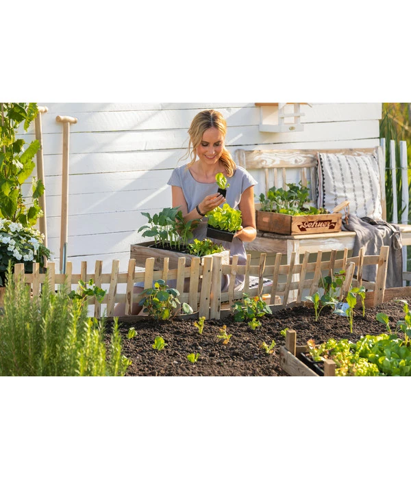Lieben Sie es, Ihren Garten in einem charmanten Landhaus-Stil zu gestalten? Dann ist der Holz-Naturbeetzaun ideal für Sie. Er präsentiert sich als ein unverzichtbares Element für ein verträumt rustikales Ambiente. In Kombination mit Rabatten voll opulenter Rosen und sommerlicher Stauden oder als optisches Highlight um Ihre Gemüsebeete gesteckt, zaubert dieser Zaun überall ein harmonisches Flair. Zudem erfreut er durch seine Stabilität und eine einfache Befestigungsmöglichkeit. Denn er besitzt verlängerte Erdspieße, sodass Sie den Holz-Naturbeetzaun wunderbar zügig an geeigneter Stelle aufstellen können.