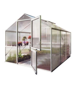 Ihr KGT Gewächshaus Rose II besteht aus einer hochstabilen Konstruktion aus korrosionsbeständigen Aluminiumprofilen, in der die 10-mm-Hohlkammerplatten vollständig und damit auch dicht gefasst werden. Außerdem ist die Hohlkammerverglasung außen mit einem hochwertigen ‚Longlife‘-UV-Schutz versehen, dervor schädlicher UV-Strahlung und damit vor Verbrennungen auf den zarten Blättchen schützt. Gleichzeitig kommen Ihre Pflanzen dabei in den Genuss einer maximalen Lichtausbeute sowie der wärmeisolierenden Eigenschaften der Hohlkammerplatten und können sich optimal entwickeln. Einer Verlängerung Ihres Gartenjahres steht also nichts mehr im Wege!