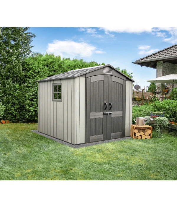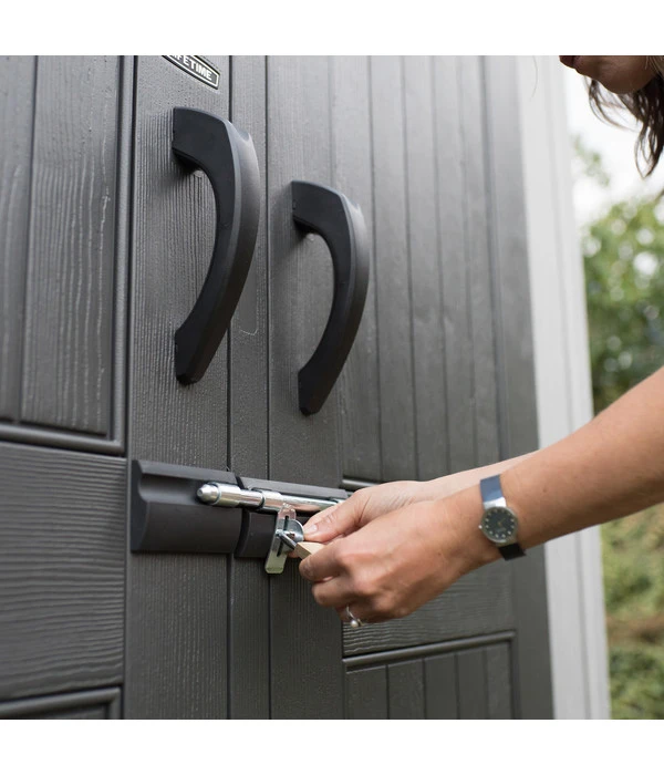 Wenn Sie gerne alle Ihre Gartengeräte an einem Platz wissen, um sie für den nächsten Einsatz griffbereit zu haben, ist das attraktive Gerätehaus Stella der Marke Lifetime bestimmt eine gute Wahl für Sie. Es bietet breite Doppeltüren, damit Sie ausladende Maschinen wie beispielsweise einen Aufsitzrasenmäher komfortabel hineinstellen und ohne lästiges Umräumen hinausfahren können. Zugleich ist das Haus kompakt und lässt sich dadurch gut an vielen Orten aufstellen. Als äußert vorteilhaft erweist sich die Verwendung von hochwertigem Kunststoff, der das Produkt von Liftime pflegeleicht und wartungsfrei macht. So haben Sie mehr kostbare Zeit zur Verfügung, Ihren Garten entspannt zu versorgen und zu genießen.