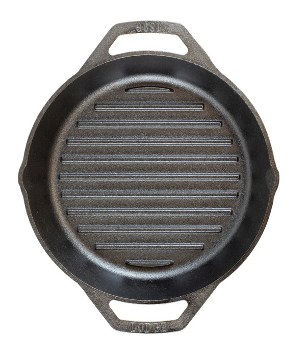 Wenn Sie einen Weg suchen, die Reinigung des verkrusteten Grillrostes beim Anbraten von Fleisch oder Gemüse zu umgehen, sollten Sie einen Blick auf die Lodge Gusseisen-Grillpfanne werfen. Schnell werden Sie feststellen, dass sich derartige Arbeiten mit diesem Grillhelfer wesentlich entspannter erledigen lassen. Zudem bietet die Pfanne, die bereits ab Werk mit Rapsöl eingebrannt wurde, eine Plug and Play-Funktion. Auspacken und auf den Grill stellen ist schnell getan. Es fehlen nur noch die Steaks oder das Grillgemüse, um loszulegen. Aber selbstverständlich können Sie die Pfanne auch auf jedem Herd benutzen.