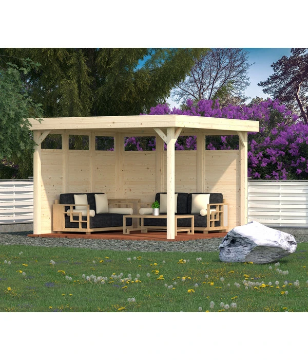 Das Holzelement von Palmako wurde mit einem Echtglas-Oberlicht ausgestattet, damit sich Ihnen gleich mehrere Vorteile bieten. Unter anderem wehrt das Element nicht nur unerwünschte Blicke ab, sondern gewährleistet zudem ein angenehmes Licht. Da Sie einen passenden, ausgeklinkten Pfosten und Distanzleisten dazu erhalten, kann der Sichtschutz sofort eingesetzt werden. Entscheiden Sie sich jetzt für das Holzelement der Marke Palmako und bestellen Sie es direkt im Paket mit Ihrem neuen Pavillon Lucy.