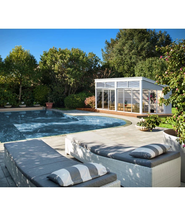 Dieser schöne und vollständig geschlossene Pavillon ist die perfekte Ergänzung für jeden Garten und bietet einen gemütlichen und geschützten Raum zum Entspannen und Genießen in der Natur. Der aus hochwertigem Fichtenholz gefertigte Pavillon ist witterungsbeständig und bietet optimalen Schutz vor Wind und Wetter. Seine Fenster und Schiebetürenelemente bestehen aus dickem Isolierglas, sodass Sie ihn das ganze Jahr über nutzen können. Aber das ist noch nicht alles – der Pavillon Nova von Palmako verfügt auch über Polycarbonat-Doppelstegplatten als Dacheindeckung, die zusätzlichen Schutz vor Sonne und Regen bieten. Darüber hinaus können Sie Ihren neuen Pavillon auch noch dämmen, damit Sie noch höheren Wohnkomfort genießen können.