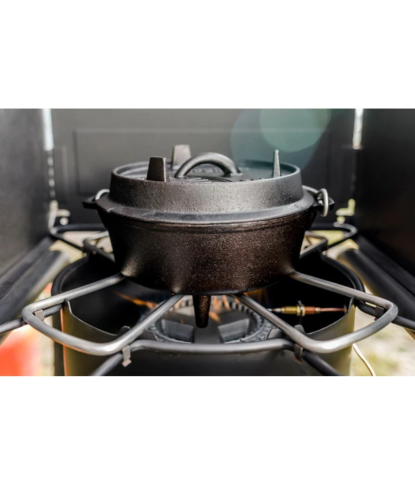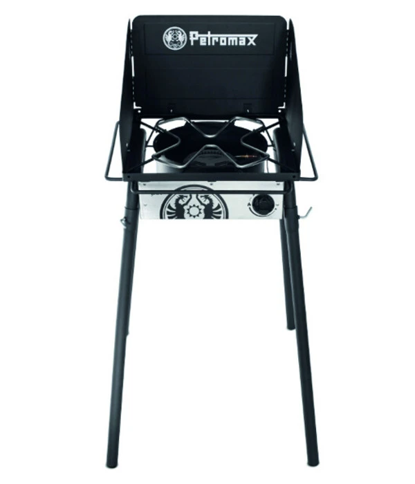 Wenn Sie beim Zelten auf dem Campingplatz oder bei einem Ausflug in Ihren Schrebergarten nicht auf warme und leckere Mahlzeiten verzichten möchten, dann ist der Gastisch von Petromax ein perfektes Utensil für Sie! Aber auch zum Kochen auf Ihrer Terrasse oder in Ihrem Vorgarten ist der Gasherd, der mit handelsüblichen Propangasflaschen betrieben wird, ein nützlicher Begleiter, mit dem Sie aromatische und köstliche Speisen zubereiten können. Regulieren Sie ganz einfach beim Kochen oder Braten stufenlos die gewünschte Temperaturzufuhr durch Drehen des Bedienknopfes mit integriertem Piezozünder. Ein abnehmbarer Windschutz verhindert zuverlässig ein Löschen der Gasflamme. Dabei ist der Gastisch für alle Petromax Pfannen und Feuertopfmodelle ab der Größe ft3 geeignet.