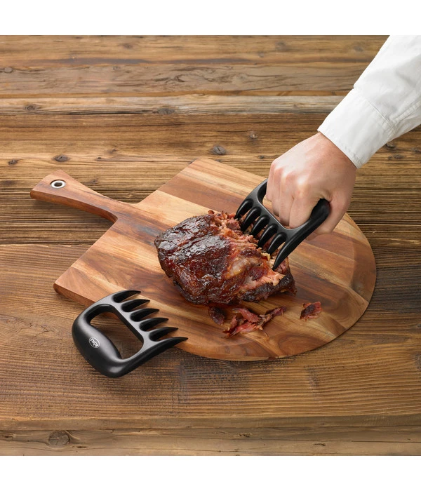 Trendsetter der köstlichen Barbecue-Kreation Pulled Pork waren amerikanische Grillmeister, doch auch hierzulande sollte das zarte Fleisch vom Holzkohlegrill nicht fehlen. Die Pulled Pork Forks von Rösle erleichtern Ihnen das Anrichten des leckeren Gerichts. Die handlichen Griffe der Gabeln lassen sich sehr gut greifen und liegen stabil in der Hand. Die breiten Zinken zerteilen das Fleisch in angenehm große Streifen, die sich gut verspeisen lassen. Die praktischen Grillgabeln sind aus hitzebeständigem Polycarbonat gefertigt, das stabil und leicht zu reinigen ist. Die Fleischgabeln können auch zum Umdrehen des Bratens auf dem Rost oder für den Transport des Fleisches genutzt werden.