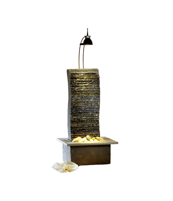 Eine Besonderheit bei dem Seliger Zimmerbrunnen Suna ist, dass es sich bei jedem Gegenstand um ein Unikat handelt. Jede Schieferplatte entsteht über viele Jahrmillionen und weist unterschiedliche, mineralische Farbnuancen auf. Neben dem Zimmerbrunnen sind im Lieferumfang eine Pumpe, eine Zuleitung, eine Halogenbeleuchtung sowie Flusskieselsteine enthalten. Sie bedienen die Echtsteinwasserwand mithilfe eines 3-stufigen Schalters. Bei eingeschalteter Pumpe können Sie zusätzlich eine Halogenbeleuchtung hinzufügen. Wenn Sie auf der Suche nach etwas Entspannung im Alltag sind, dann sollten Sie sich jetzt für den Seliger Zimmerbrunnen Suna entscheiden.