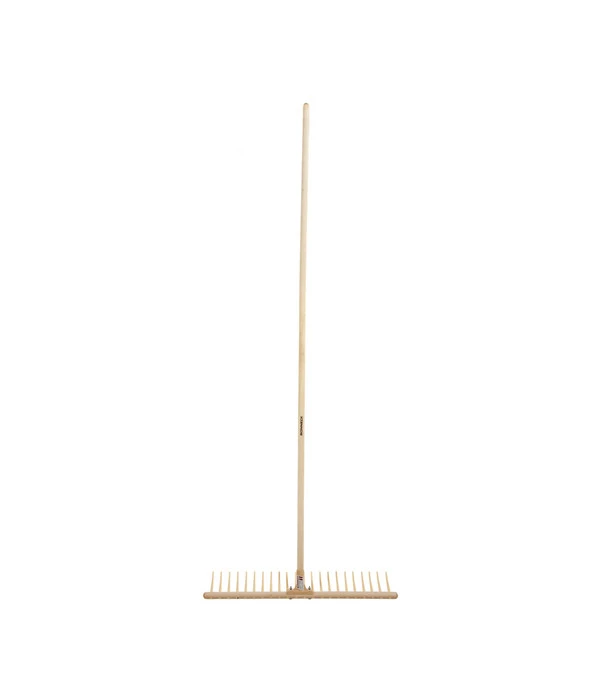 Nützliches Gartengerät, das gut in der Hand liegt: Der Holzrechen besteht aus einem robusten, zwei Meter langen Holzstiel und einem 80 cm breiten Kopfteil mit 22 PVC-Zähnen. Letztere lassen sich einfach reinigen, so dass der Rechen lange gute Dienste für Sie und für den Garten leistet.