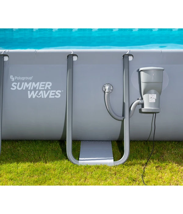 Natürlich ist es mit dem schnellen Aufbau nicht getan. Sie wollen ja auch bequem und sicher in Ihren Summer Waves Frame Pool hinein- und wieder herauskommen. Und die Wasserqualität sollte dauerhaft erhalten bleiben, richtig? Auch dafür ist hier gesorgt. Mit der Lieferung erhalten Sie deshalb eine stabile Sicherheitsleiter sowie eine Sandfilterpumpe und ein Reinigungsset. Eine passende Abdeckplane und das Unterlegvlies gehören ebenfalls gleich mit dazu.