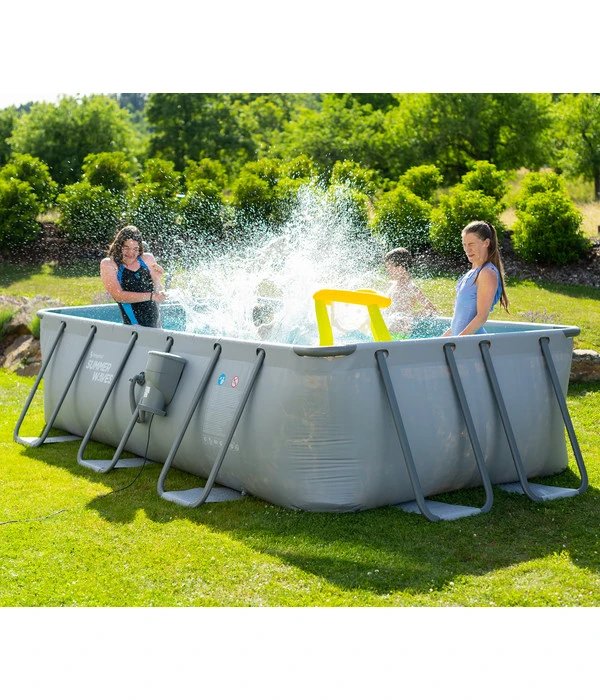 Dieses Jahr hier, nächstes Jahr dort – Ihr Pool soll flexibel bleiben, weil Sie über den Standort in Ihrem Garten jedes Jahr frei entscheiden wollen? Aber auf Ihre Wunschgröße wollen Sie natürlich trotzdem nicht verzichten. Dann ist ein Summer Waves Frame Pool genau das Richtige. Ein stattlicher Gartenpool in elegantem Anthrazit, der sich leicht auf- und abbauen lässt und somit genau dort stehen kann, wo Sie es gerne hätten. Das Innere Ihres neuen Pools leuchtet im typischen aquablauen Mosaikdessin und lässt das kühle Wasser darin so blau strahlen wie das Meerwasser einer Südseelagune – einfach verführerisch. Und dieser Verführung dürfen Sie sich ab jetzt hingeben, wann immer Ihnen danach ist. Vor dem Frühstück, nach der Arbeit, am Wochenende. Wenn andere schwitzen, kühlen Sie sich entspannt ab. Gönnen Sie sich diesen beeindruckenden Summer Waves Frame Pool und genießen Sie Ihren ersten Traumsommer im eigenen Garten damit!