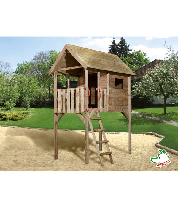 Ein fröhliches Kinderlachen ist eine richtige Wohltat. Das Tabaluga Kinderstelzenhaus 815 sorgt für noch mehr Spaß und Freude im Garten, da Ihre Lieblinge ihre Fantasie hierin ausleben können. Stellen Sie sich einmal die leuchtenden Kinderaugen vor, wenn sie beispielsweise als Piraten von dem kleinen Balkon aus nach einem Schatz Ausschau halten. Oder wie wäre es, wenn Sie ihnen ein Spieleparadies zaubern? Eines ist sicher: Ihre Mäuse vergessen beim Spielen die Zeit und wollen das Stelzenhaus nicht mehr so schnell verlassen. Um es noch individueller zu gestalten, können Sie die Leiter variabel anbauen. Durch das kesseldruckimprägnierte Holz ist das Tabaluga Kinderstelzenhaus 815 selbst gegen Witterungen geschützt, sodass sie viele Abenteuer darin erleben können.