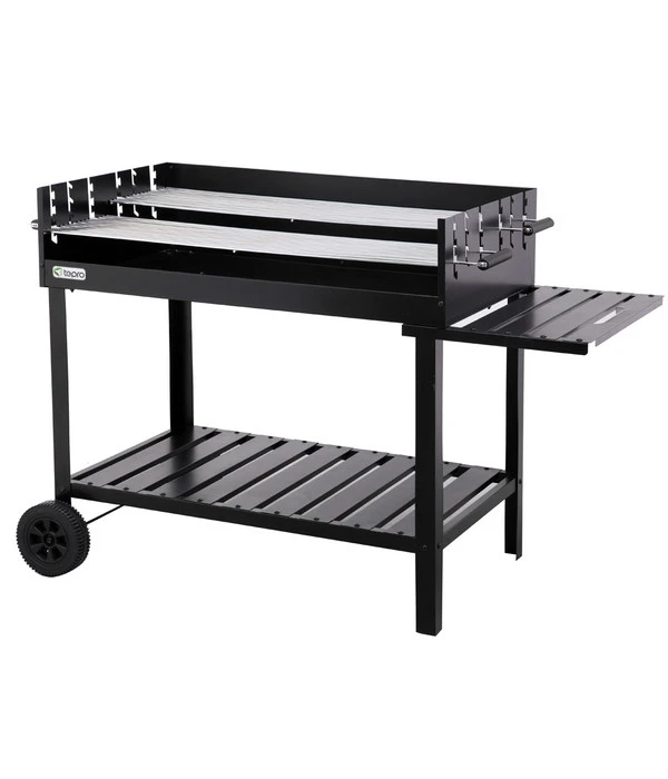 Eine knusprige Bratwurst oder ein leckeres Steak ist zweifellos ein besonderer Genuss: Nicht umsonst erfreut sich das Barbecue als Zubereitungsmethode für Fleisch, Fisch und Co. in Deutschland einer großen Beliebtheit. Wer dabei auch in Sachen Qualität nichts dem Zufall überlassen möchte, ist mit dem tepro Holzkohle-Grillwagen Atlanta genau richtig bedient. Gleich zwei verchromte Grillroste mit den Maßen 98 x 28 cm fungieren hier als Ablagefläche für das gewünschte Grillgut. Dank der Möglichkeit, beide Roste in der Höhe zu verstellen, behalten Sie jederzeit die volle Kontrolle über die genaue Grilltemperatur. Je nach Bedarf variiert die Arbeitshöhe des tepro Holzkohle-Grillwagens somit zwischen angenehmen 77 und 88 cm. Auf den lackierten Boden und Seitenablagen bereiten Sie zudem Salate und Beilagen direkt am Grill vor, alternativ lagern Sie hier Ihr Lieblingsfleisch bis zur Zubereitung auf dem Grill auf komfortable Art und Weise. Getragen wird das hochwertige Gerät von vier lackierten Beinen, wovon zwei mit Kunststoffrädern ausgestattet sind. Der tepro Holzkohle-Grillwagen Atlanta verfügt außerdem über ein außerordentlich hohes Kohlefassungsvermögen von maximal 5,0 Kilogramm.