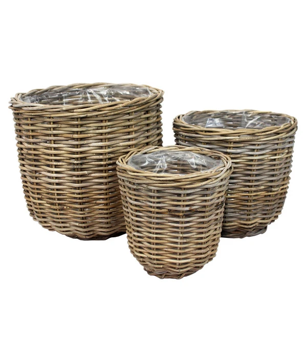 Pflanzkorb aus Naturgeflecht, mit Folie ausgekleidet