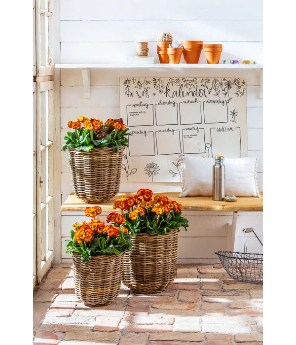 Genießen Sie auch immer diese kleinen Momente, wenn Sie Töpfchen mit frischen, duftenden Kräutern mit nach Hause gebracht haben? Vielleicht haben Sie auch genau deshalb hier beim Rattan-Pflanzkorb innegehalten. Denn in einem dieser charmanten, liebevoll geflochtenen Pflanzkörbchen werden sich Ihre aromatischen Küchenhelfer einfach traumhaft präsentieren. Ein appetitlicher und ein dekorativer Effekt gleichermaßen, der gleich noch eindrucksvoller wird, wenn Sie mehrere Kräuter als Gruppe mit je einem Rattan-Pflanzkorb auf Ihre Küchentheke oder Ihr Fensterbrett stellen. Aber natürlich bringt er auch bunte Blühpflanzen ganz wunderbar zur Geltung. Lassen Sie also einfach Ihre Fantasie bestimmen und bringen Sie mit dem Rattan-Pflanzkorb frischen Deko-Wind in Ihr Zuhause.