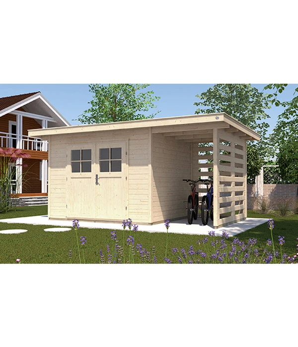 Sie möchten in Ihrem Garten nicht nur einen Geräteschuppen und eine Abstellmöglichkeit für Werkzeuge und mehr? Sie legen auch Wert auf ein naturnahes Design und wollen sich in Ihrem Gartenhäuschen bei schlechtem Wetter auch einmal mit ein paar Freunden aufhalten können? Dann ist das Gartenhaus 179 A der Marke Weka perfekt für Sie. Neben einem großzügigen Rauminhalt bietet Ihnen das Modell auch einen seitlichen Anbau, der als Unterstand für Fahrräder oder für Ihre Gartengeräte genutzt werden kann.