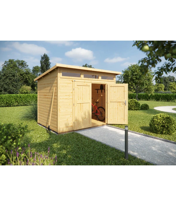 Das aus Fichtenholz bestehende Gartenhaus 264 von Weka ist mit einem eleganten Pultdach ausgestattet. Wenn es einmal regnet, kann das Wasser einfach abfließen. Ein weiteres nützliches Merkmal sind die breiten Fenster über den Türen. Sie sorgen als Oberlicht für angenehme Lichtverhältnisse im Innern. Also warten Sie nicht lange und bestellen Sie am besten noch heute, um Ihren Outdoorbereich schon bald mit dem hübschen, von Weka stammenden Gartenhaus 264 zu ergänzen.