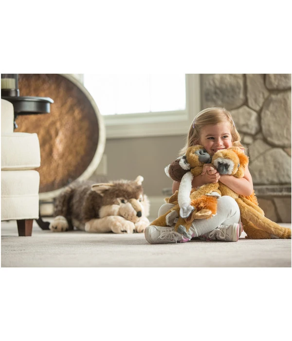 Die berühmten Grimms Märchen von Rotkäppchen und den sieben Geißlein, in denen Wölfe als gefährliche und listige Raubtiere beschrieben werden, kennt jedes Kind. Und vielleicht gehört dieser kleine Kitzel dazu, um die faszinierende Ausstrahlung des WILD REPUBLIC® Wolf liegend perfekt zu machen. Denn umso größer ist die Diskrepanz zwischen den aufregenden Märchen und dem friedlichen Spielgefährten, der gutmütig alles mitmacht, worauf Ihr Kind Lust hat. Mit seiner imposanten Länge von ca. 77 cm lädt er so richtig ein, mit ihm auf dem Boden herumzutollen, den Kopf auf seinen Körper zu legen oder ihn ganz fest in den Arm zu nehmen. Und dabei das herrlich weiche, plüschige Fell des Wolfs zu spüren. Vielleicht träumt dann Ihr Kind davon, dass es einen zahmen Wolf als Haustier und persönlichen Beschützer hat? Machen Sie Ihrem Kind eine besondere Freude und schenken ihm das Stofftier WILD REPUBLIC® Wolf!