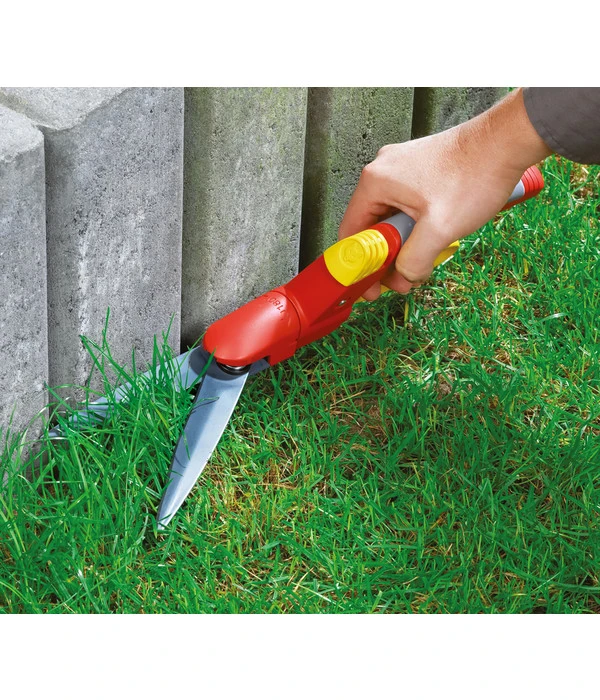 Der geschlossene Untergriff der Schere schütz Ihre Hand vor Kratzern. Zusammen mit dem Schneidkopf der um 180° gedreht werden kann, ist diese Grasschere absolut flexibel. Mit dieser Schere kommen Sie wirklich an jeden Grashalm ohne sich selbst Schürfwunden oder Kratzer zuzuziehen. Die verbesserte Mechanik garantiert Ihnen einen 30 % geringeren Krafteinsatz bei der Bedienung der Grasschere. Dieser Effekt wird zusätzlich unterstützt von der reibungsarmen Antihaftbeschichtung der Klingen. Verschmutzungen können sich nicht an den Klingen festsetzen. So bleibt die Schneide sauber und behält Ihre Schärfe. Die Grasschere von Wolf zeichnet sich ebenso durch einen komfortablen Umgang wie auch durch hochwertige Technik aus. Die perfekte Grasschere zur Pflege Ihrer Rasenkante und zur Arbeit im Garten.