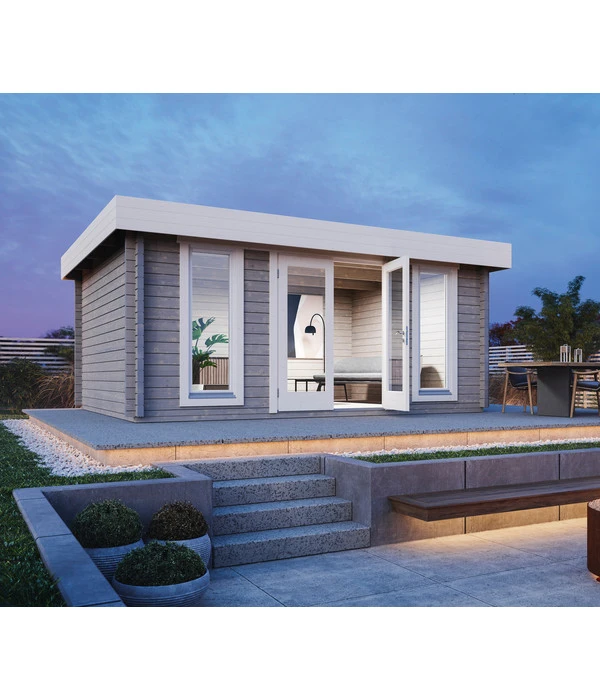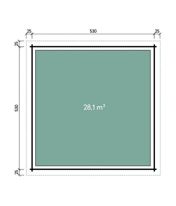 28,1 m², 70 mm Wandbohlen, Pultdach, Isolierverglasung