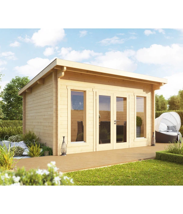 20 m², 44 mm Wandbohlen, Pultdach, Echtverglasung