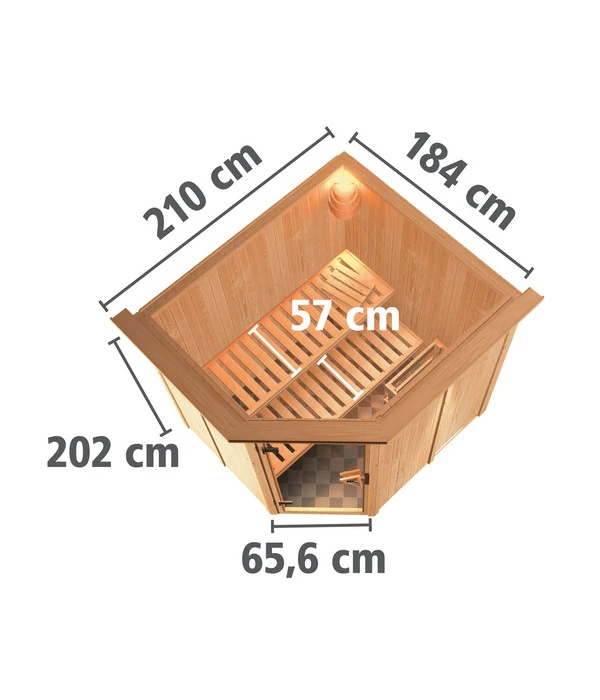 Die körpereigenen Abwehrkräfte stärken, Muskelverspannungen lösen, die Durchblutung anregen – das regelmäßige Schwitzen in der Sauna hat mehr als einen positiven Effekt für die Gesundheit. Von dem Stressabbau und dem wohligen Gefühl danach ganz zu schweigen. Damit Sie dieses persönliche Gesundheits- und Fitnessprogramm ganz bequem bei sich zu Hause erledigen können, stellen wir Ihnen hier die Wolff Finnhaus Innensauna de luxe Aliki vor. Dieses Modell lässt sich prima in eine Zimmer- oder Kellerecke platzieren und braucht dabei nur wenig Platz, bietet innen aber mit dem beiden langen Bänken allen Komfort, den man sich wünschen kann. Tun Sie ab jetzt Ihrer Gesundheit etwas Gutes und besuchen Sie regelmäßig Ihre ganz private Sauna im eigenen Haus! Ohne lästiges Hinfahren, ohne Parkplatzsuche und ohne Gedrängel in der Saunakabine!