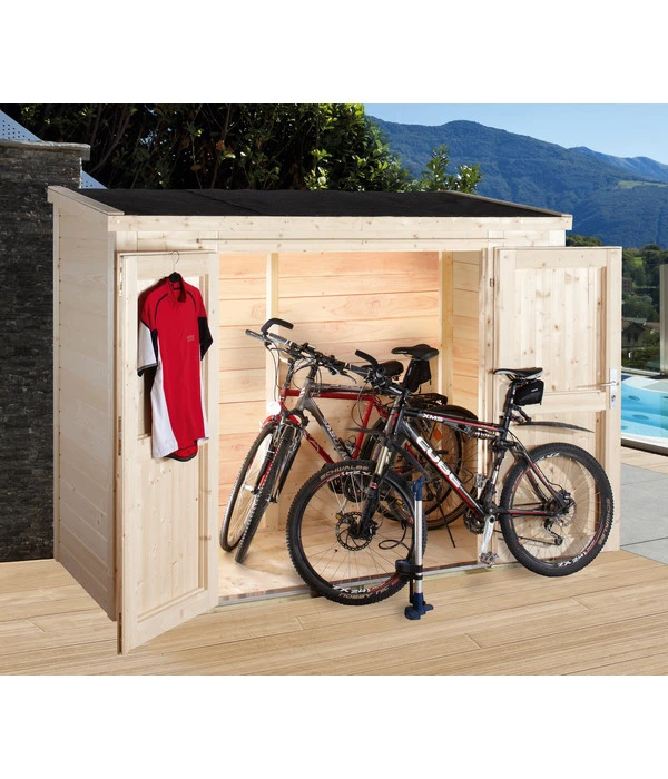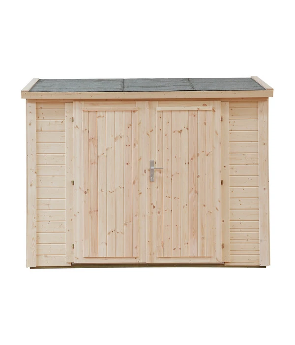 Bestimmt möchten Sie wissen, wie komfortabel sich das Hineinstellen und Entnehmen Ihres Hab und Guts gestaltet? Der Wolff Finnhaus Premium Geräteschrank 20-D ist mit einer Edelstahlschwelle und einer großen Doppeltür ausgestattet, die Ihnen einen bequemen Zugang zum Inneren der Box ermöglicht. Auch relativ sperrige Gegenstände lassen sich aus diesem Grund unkompliziert lagern. Doch nicht nur in praktischer Hinsicht überzeugt die qualitätsvolle Konstruktion, sondern auch in optischer: das schlichte, naturbelassene Design fügt sich harmonisch in die natürliche Umgebung des Gartens ein. Bestellen Sie sich einen Premium Geräteschrank 20-D von Wolff Finnhaus und kreieren Sie mit seiner Hilfe Ihre persönliche Gartenzentrale.
